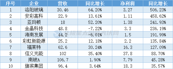 火爆的行情之下,带来的则是玻璃企业年度业绩呈现爆发式增长。据北极星太阳能光伏对2020年十家上市光伏玻璃企业年报统计显示,洛阳玻璃(01108)净利润水平同比增长至超5倍、安彩高科净利润增幅超4倍,亚玛顿、金晶科技净利润实现2倍以上增长,海南发展、彩虹新能源(00438)、福莱特(06865)净利润成倍增长,南玻A、旗滨集团净利润达到35%以上。
