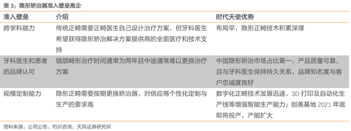 行业壁垒高企,国内隐形正畸市场长期呈现两家独大趋势。提供隐形矫治解决方案需要供应商具有强大的跨学科能力,包括正畸学、生物力学、材料科学、计算机科学及智能制造技术等。