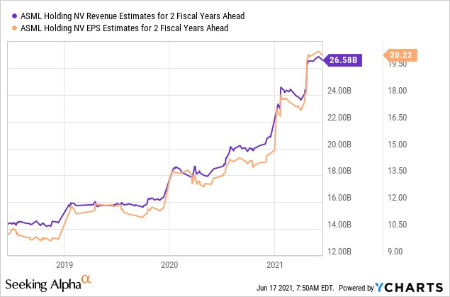 对未来几年的估计也清楚地表明了对 ASML 前进的坚定信念,由于该公司强大的投资组合和市场主导地位,近年来该预测一直在稳步攀升。