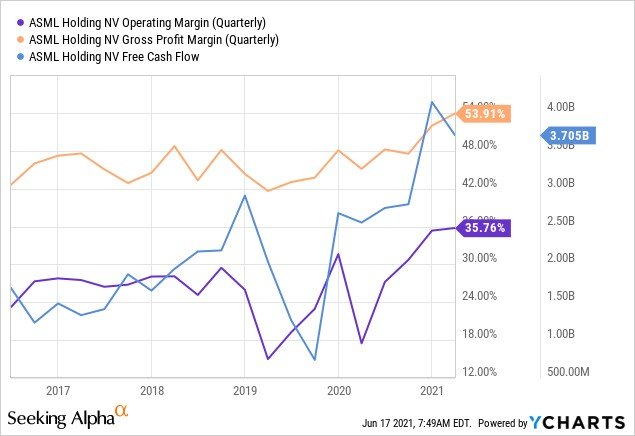 收入增长明显快于以前,毛利率和自由现金流也有所改善。由于这一积极的发展,ASML 还将通过 2021 年 100 亿欧元的股票回购计划向其股东返还大量资本,不幸的是,这仅相当于减少了当前流通量的 0.5%。