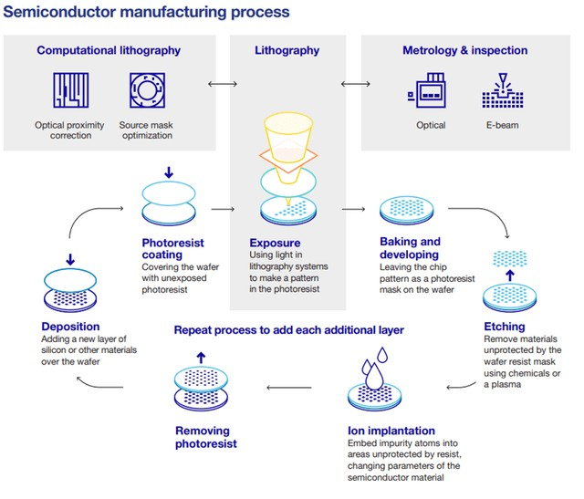 “光刻是创造更强大、更快和更便宜的芯片的驱动力。随着半导体特征尺寸的缩小,芯片的制造变得越来越复杂,而以合适的成本进行大规模生产的必要性仍然存在。我们的整体光刻产品组合通过将光刻系统与计算建模以及计量和检测解决方案相集成,有助于优化生产并实现可承受的收缩。光刻系统本质上是一个投影系统。光通过将要打印的图案的蓝图(称为“掩模”或“标线”)投射。