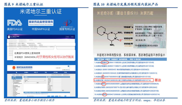 蔓迪有效成分为米诺地尔,国内包含蔓迪在内已经有10款米诺地尔产品获nmpa审批,但在营销和运营上蔓迪建立了比较高的品牌心智。