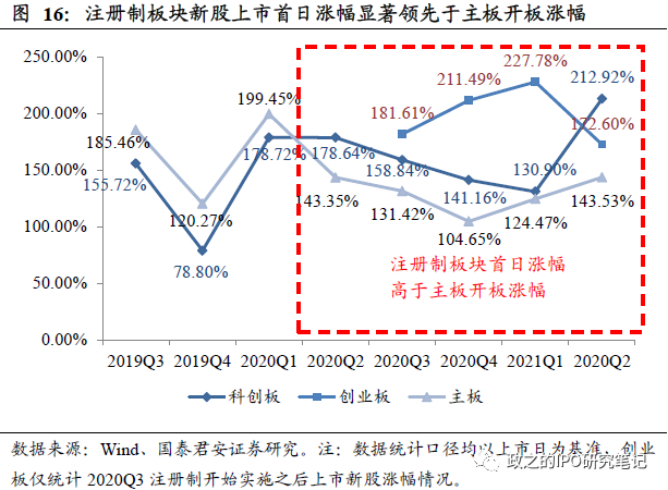 注册制板块上市后估值更高,且短期回撤更为明显