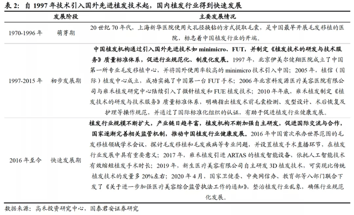 1.1. 植发行业历经五十余年发展,技术日渐成熟