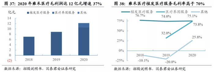雍禾医疗在2019年开始提供医疗养固服务,按照“店中店”模式在每家植发机构内建立健发中心,服务包括脱发、发质细软、头皮搔痒及头皮出油等;据雍禾医疗招股说明书,2019年医疗养固服务收入仅1506万元,但是2020年大幅增长至2.13亿元;