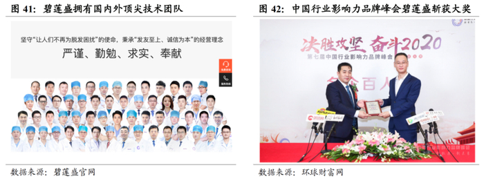 碧莲盛成立于2005年,历经发展已成为中国领先的一站式毛发治疗综合服务提供商。自2008年开始,碧莲盛曾连续多次代表中国参加世界植发大会,拥有国内外技术顶尖的专家团队。2018年1月,碧莲盛获得了金额5亿元人民币的战略投资,成为国内医疗植发行业典范,开始上市之路;2019年碧莲盛通过构建线上线下协同服务体系,高效整合医疗资源,形成了一个从咨询到诊疗,从线上到线下,集植发、养发、护发、固发于一体的整体毛发产业生态闭环。