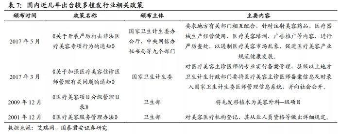 我们认为,未来行业内或加强植发机构营销监管,一方面维护消费者权益,另一方面促进行业有序健康发展。