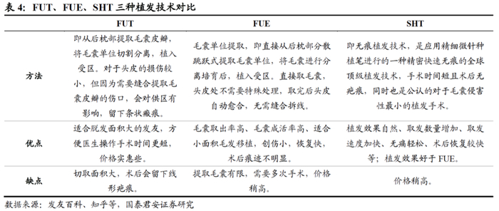 目前国内植发技术主要包括FUT、 FUE和SHT三种。