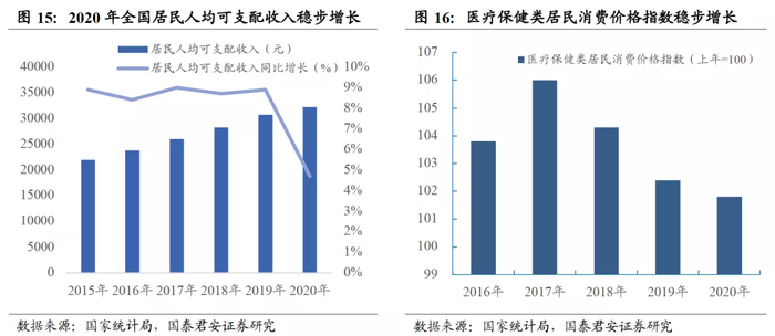 人均收入稳步增长,消费升级背景下使得植发医疗服务的可负担性越来越高。随人均收入提升,服务性消费需求全面增长,消费升级大势所趋。据国家统计局数据显示,2019年起人均GDP跨入1万美元大关;2020年全国居民人均可支配收入为32189元同比增长4.7%,其中城镇居民人均可支配收入为43834元同比增长3.5%,农村居民人均可支配收入为17131元同比增长6.9%。因此,人均可支配收入的稳步增长进一步提高了消费者的购买力水平,使植发医疗服务更易于负担。