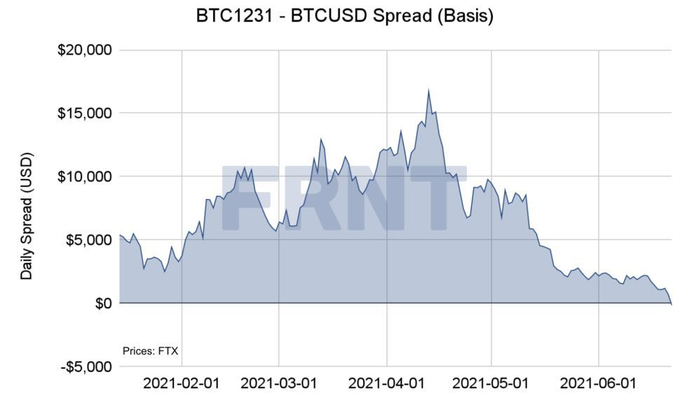 加密货币中最可靠的交易之一——期货价差套利出现崩溃,伴随比特币现货价格下跌,投资者内在的看涨情绪已经逐渐消失。