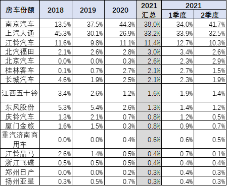 以大通、全顺为代表的B型房车及以依维柯为代表的二类底盘制作的C型房车。目前旅居车市场的产品主要是江苏的企业,南汽依维柯和上汽大通是主要的企业。江铃的旅居车产品也相对丰富,成为发展较快的。