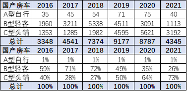 从数据看中国市场情况,不论从现有产品种类看,短期内中国房车车型仍将以自行式为主,其中C型房车仍将占据主导地位。
