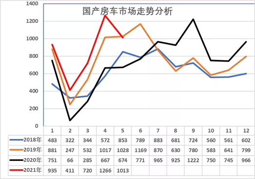 今年1-5月份,房车市场达到了4345台的水平,体现了房车市场的在疫情之后的消费的快速回暖特征。