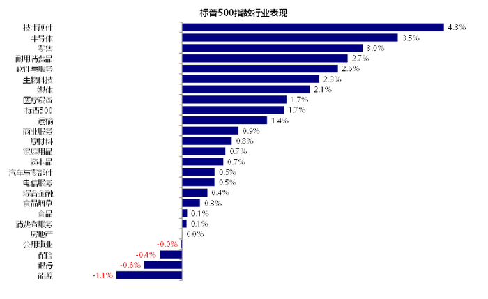 过去一周,成长领跑价值,技术硬件、半导体、零售领涨,能源、银行、保险下跌