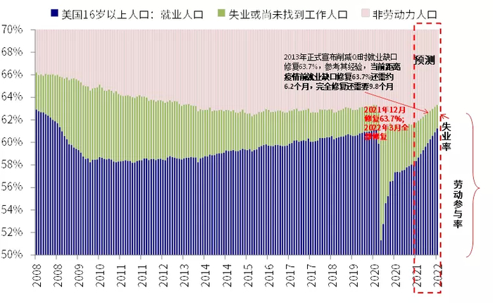 参考2013年Taper经验,当前距离疫情前就业缺口修复63.7%还要6.8个月,也就是今年年末