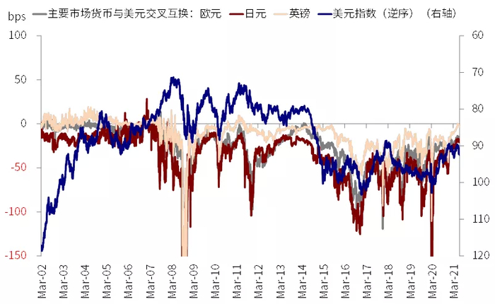 衡量全球流动性的欧元日元和英镑与美元的3个月交叉互换仍处于历史高位,但略有收紧