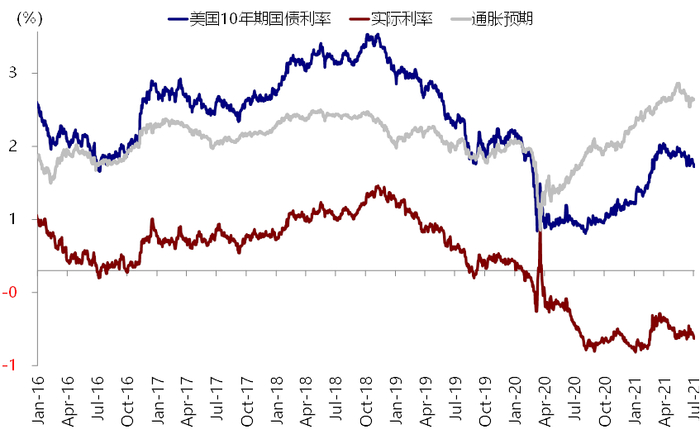 资产表现:大宗>股>债;利率下行,成长领先。整体看,美元计价下,大宗>股>债,大豆、天然气、FAAMNG、比特币、美股领涨;A/H股、巴西股汇领跌。板块层面,成长领跑价值,技术硬件、半导体、零售领涨,能源、银行、保险下跌。10年美债利率继续回落10bps至1.42%,其中实际利率回落8bps,通胀预期回落2bps。