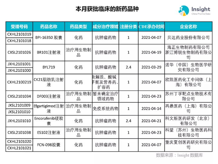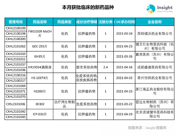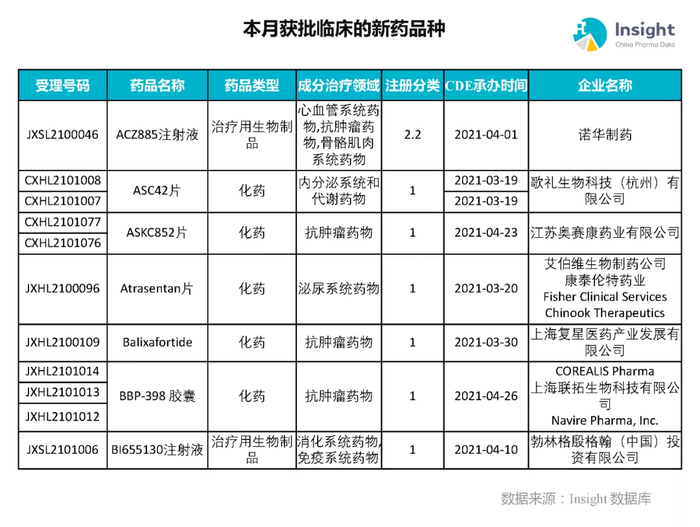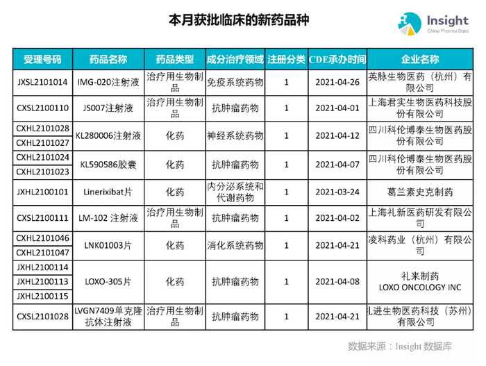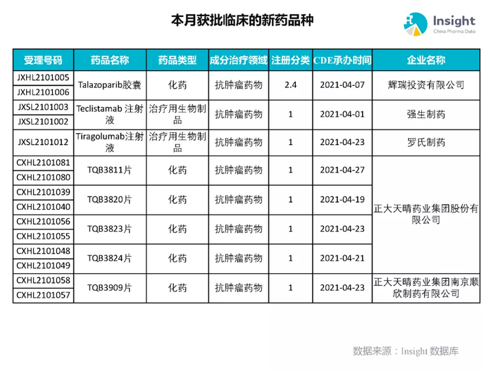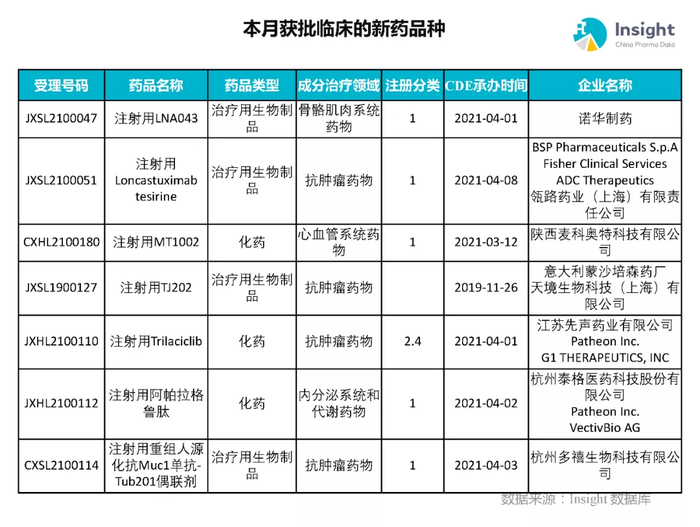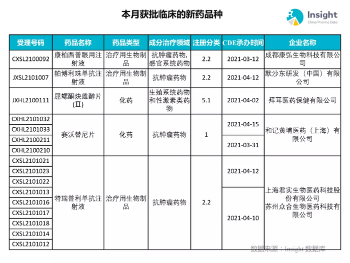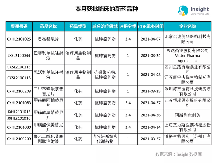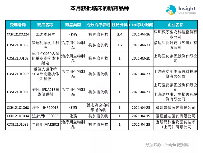 本月获批临床新药品种