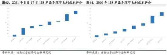 产业内博弈加剧,下游各环节盈利水平均有下滑。根据2020年平均情况以及2021的最新情况,我们制作了光伏产业链简易模型,计算发现,以158单晶产品为例,当前硅片和电池片的单瓦毛利与2020年全年相比,降幅或已超过50%,组件环节则由于玻璃价格下降等因素单瓦毛利降幅较小。