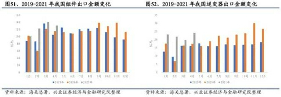 海外装机逐步开始复苏。美国1月份新增太阳能装机容量0.92GW,同比下降51.5%,环比下降76.9%;其中,新增集中式光伏装机容量0.42GW,去年同期为0.53GW;新增分布式光伏装机容量0.50GW,去年同期为1.37GW。2月份,新增太阳能装机容量1.13GW,同比增长60.1%,环比增长22.0%;其中,新增集中式光伏装机容量0.76GW,去年同期为0.41GW;新增分布式光伏装机容量0.37GW,去年同期为0.29GW。德国1月新增光伏装机容量0.54GW,去年同期为0.34GW,2月新增光伏装机容量0.35GW,去年同期为0.34GW,均有所增长。从海关总署关于我国组件和逆变器的出口金额、个数的数据中也可看出,2021年以来海外装机需求呈现“淡季不淡”的特征。