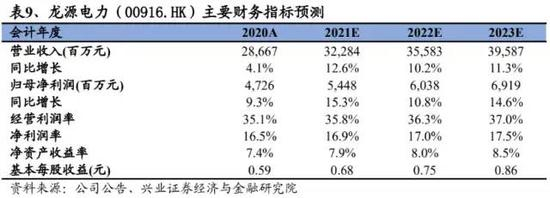 我们的观点:在碳中和背景下,公司加速布局新能源赛道,风电、光伏装机容量有望快速增长。我们预计2021-2023年,公司营业收入将达到322.8、355.8和395.9亿元;归母净利润将达到54.5、60.4和69.2亿元。维持“买入”评级,给予公司目标价12.07港元,对应2021年15倍PE。