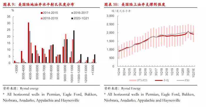 2.2、完井参数的变化:水平井不断延长,支撑剂和压裂液变化细微
