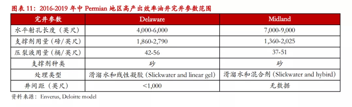 页岩油新井对完井参数呈现非线性应答的特点决定了无论是水平井长度还是支撑剂用量等因素从产出效率的角度来说并不是数值越大越好。从2016-2019年新井产量模型可以发现,Permian两大子产区油井最优的完井参数的要求差异很大,高强度的支撑剂和压裂液配合较短的水平井在Delaware区块表现较好,但Midland区块的最优表现却是长水平井配合低强度流体和支撑剂。不过,目前Delaware平均水平井长度已经远高于经验值,即便是长水平井表现更优的Midland区块今年一季度前50%的新井水平井长度也接近11,000英尺,也高于经验值。