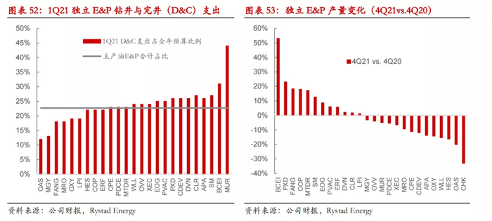 4.1、上市E&P资本支出预算和产量目标暗示低增长前景