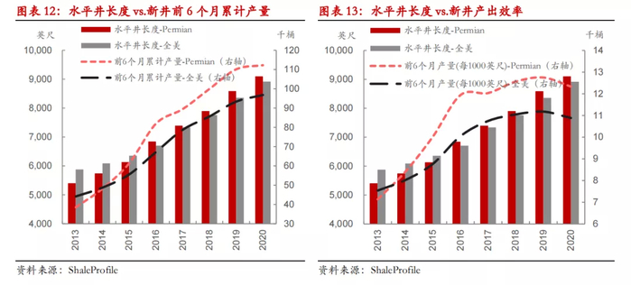 疫情前生产商的主要目标是实现产量最大化,因此即使单井设计超过最优水平井长度使得单井产出效率下降,通过增加完井数量也能够提升整体产量,即产出效率的损失可以通过增加完井活动来弥补,因此可以看到2016年以来全美新井平均前6个月累计产量逐年上升,但累积产量上升的趋势在2020年有所放缓,主要是由于完井数量因疫情大幅下滑所致。疫情后,受限于资本支出约束,完井活动仍然没有完全恢复到疫情前水平,但生产商仍在不断延长新井的水平井长度,一个可能的解释是生产商这样做并非出于提升产出效率的考量,而是为了进一步降低完井成本。