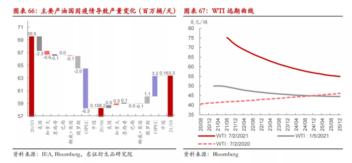 下半年美国处于增产潜力释放的空窗期对油价构成利多,当前供需两端都没有完全恢复到疫情前水平,供给端目前OPEC+和美国仍然有较大的恢复空间,OPEC+预计将维持渐进式的增长模式。全球疫苗的普及以及季节性的增长使得需求在三季度仍然有望维持增长的势头,但四季度面临回落风险。三季度在供需两端提振的情况下,油价仍有望保持震荡上行的趋势。四季度随着需求增速下降,供给端出现增长的迹象,分歧将开始显露,油价上行动能减弱,可能维持高位盘整,预计下半年油价(Brent)高点在80-85美元/桶附近。