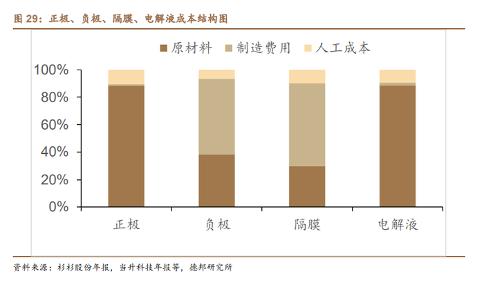 动力电池生产环节,材料成本约占80%,工费成本约20%。