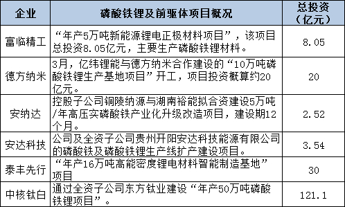 由于需求过于旺盛,铁锂正极的相关企业也开始了疯狂扩产,去年Q4以来总共有6家公司宣布了扩产或开工项目。