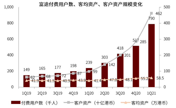 图表:富途客户数的高速增长驱动客户资产规模快速提升