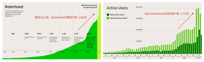 图表:Robinhood月活跃用户数及付费用户数均快速增长