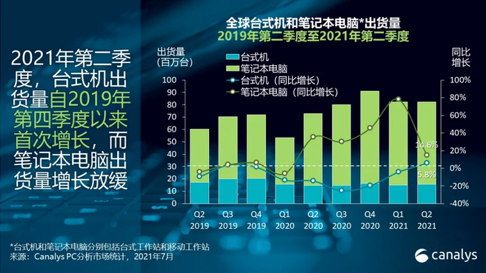 Canalys:2021年第二季度全球PC市场出货量达8230万台,联想(00992)、惠普(HPQ.US)居前二