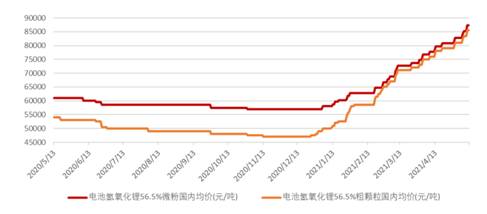 “电池级氢氧化锂现货均价为每吨89500元,较去年年底上涨了80%;碳酸锂材料价格已从去年年中的每吨3.8万元涨到了目前的9万元”,国轩高科相关负责人对中国汽车报表示。
