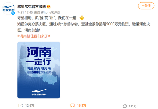 不过7月22日晚,话题“鸿星尔克的微博评论好心酸”突然爆上热搜,让这家近年低调至极的国货品牌再次进入了大众视野。原因是相比于各明星捐款热搜,鸿星尔克在21日低调地宣布驰援河南洪水灾区5000万元物资,直到第二天才被网友发现。
