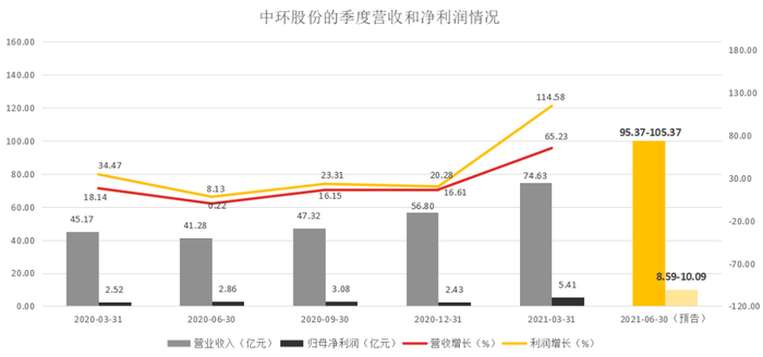 中环股份是大尺寸硅片龙头,横跨光伏、半导体两个高景气度行业。2020年营收190.57 亿元,同比+12.85%;归母净利润 10.89亿元,同比+20.51%;硅片出货约63.33 亿片(35GW),同比+24.90%。