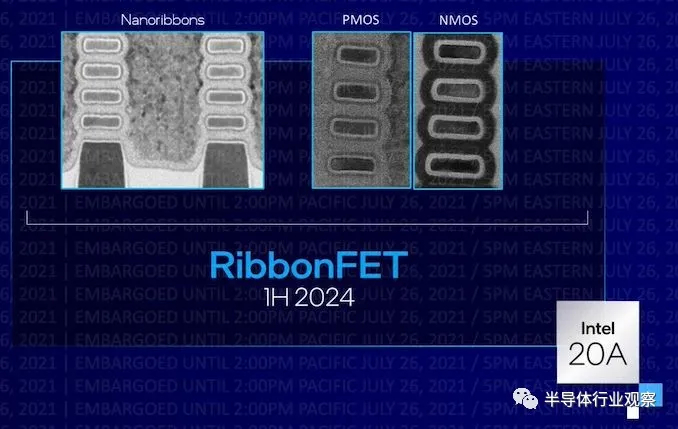 如上文所说,转向 20A 时,英特尔的工艺名称指的是埃而不是纳米。也就是在这个时刻,英特尔将从其 FinFET 设计过渡到一种新型晶体管,称为 Gate-All-Around 晶体管或 GAAFET。在英特尔的案例中,他们为其版本提供的营销名称是 RibbonFET。
