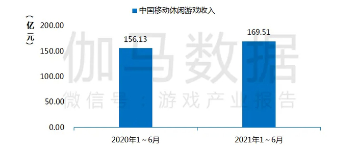 2021年1~6月中国移动休闲游戏市场实际销售收入达到了169.51亿元,同比增长了8.57%。