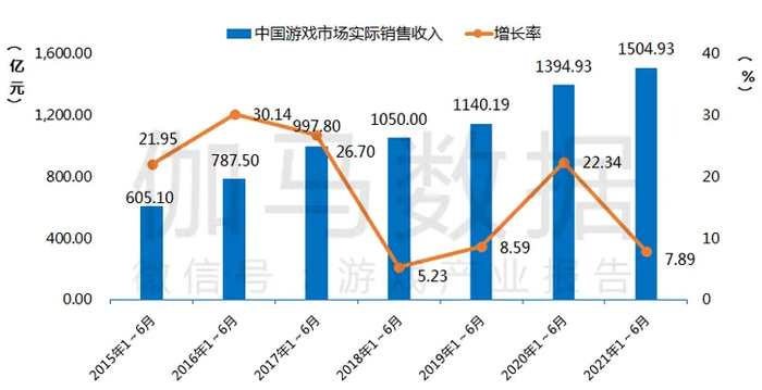 中国游戏产业2021年1-6月收入:1504.93亿,同比增7.89%