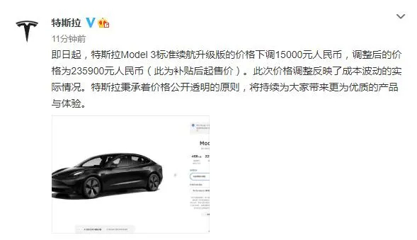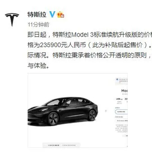7月30日,特斯拉(TSLA.US)突然宣布,即日起,特斯拉Model 3标准续航升级版的价格下调15000元人民币,调整后的价格为235900元人民币(此为补贴后起售价)。特斯拉称此次价格调整反映了成本波动的实际情况,主要原因是采用了国产电机和磷酸铁锂电池。