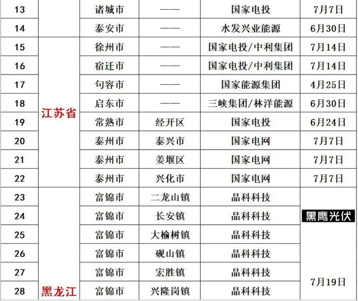 先看看“整县推进”分布式项目,能源局发文至7月25日,大家都抢到了多少?看下表,谁是主力一目了然。特别是决心抢到“500县”的国家电投速度最快,国家电网竟也不遑多让。而民营企业只有晶科科技、爱康集团、协鑫集成、正泰新能源等寥寥数家。