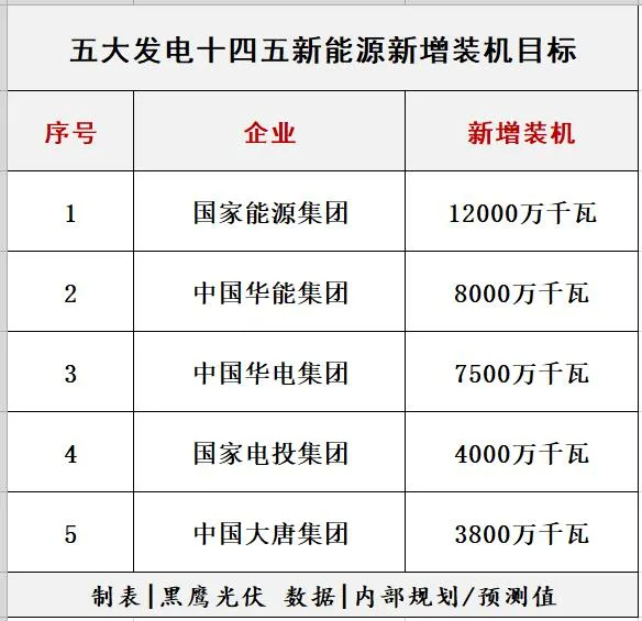 以华能集团为例,根据“智汇光伏”的统计,仅最近不到三年时间,储备了超过60GW的新能源项目资源;而其“十四五”新能源新增装机目标是惊人的8000万千瓦以上。