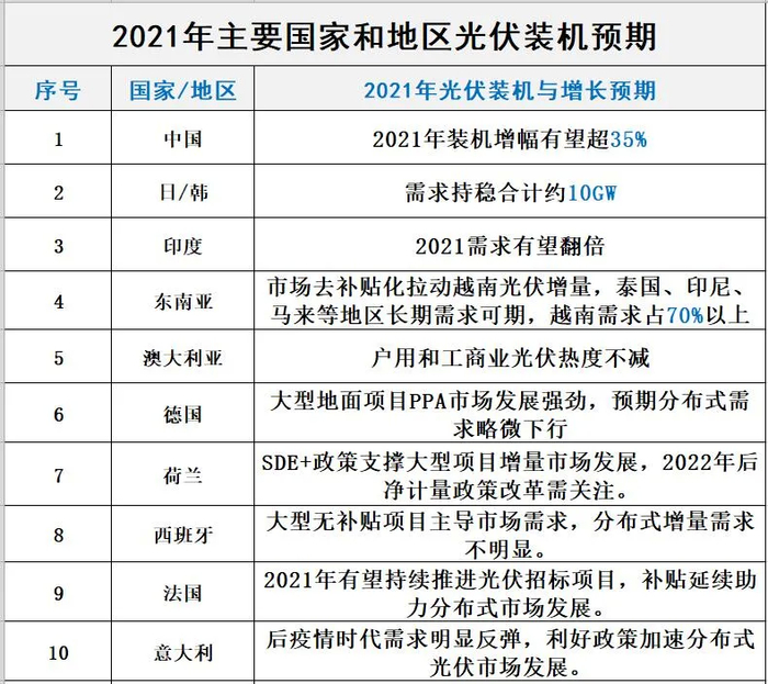 2021年光伏新增装机到底会有多少?中国光伏行业协会的预测是全球光伏装机预测150-170GW,国内55-65GW。彭博新能源的最新乐观预期是,2021年新增209GW,未来两年将分别达到221和240GW。