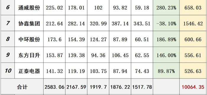 哪些企业是光伏产业近年最赚钱的企业,看下表,隆基股份、正泰电器(光伏是其中核心业务之一)、信义光能、三峡能源、通威股份等,无疑是其中的佼佼者。