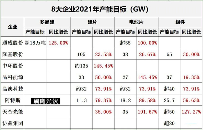 黑鹰详细统计相关数据发现,2020年,光伏疯狂扩产;2021年至今,更是疯狂扩产。我们先看2020年的一些数据: