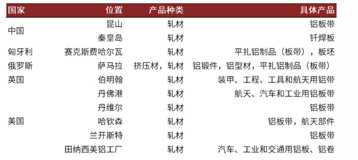 全球铝汽车板厂商产能主要分布在美欧日等发达国家和地区