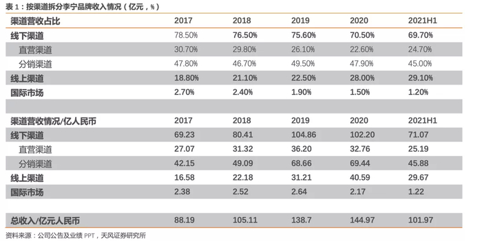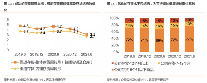 21H1继续以优化渠道结构和效率为核心,加强与优质零售商合作,推动零售渠道效率优化,增强市场覆盖质量。加速优质渠道建设,聚焦购物中心大店,持续推动旗舰店等高效大店落地,同时继续进行店铺结构优化,加速处理亏损、低效和微型面积店铺。
