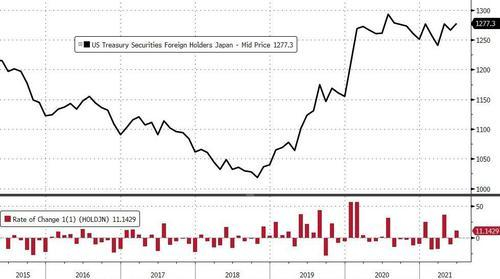 历史数据显示,2019年6月起,日本的美债持仓规模自2017年5月以来首次超越中国,晋升为第一位。去年7月时,日本所持美债总量1.29万亿美元曾创历史最高。此后,日本开始陆续减持美债,所持美债占美国政府总债务的比例一直徘徊历史低位。